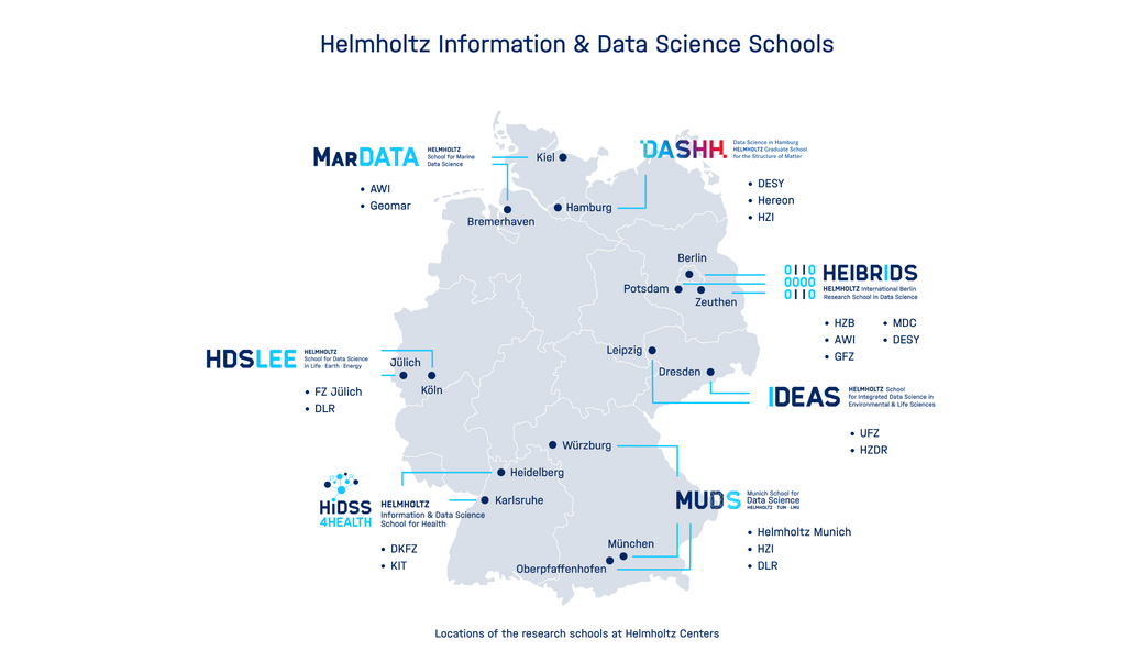 The seven Helmholtz Information & Data Science Research Schools are linked by a network of 15 national research centers and 19 top universities across Germany. Currently, these graduate schools train over 330 fully funded PhD students.